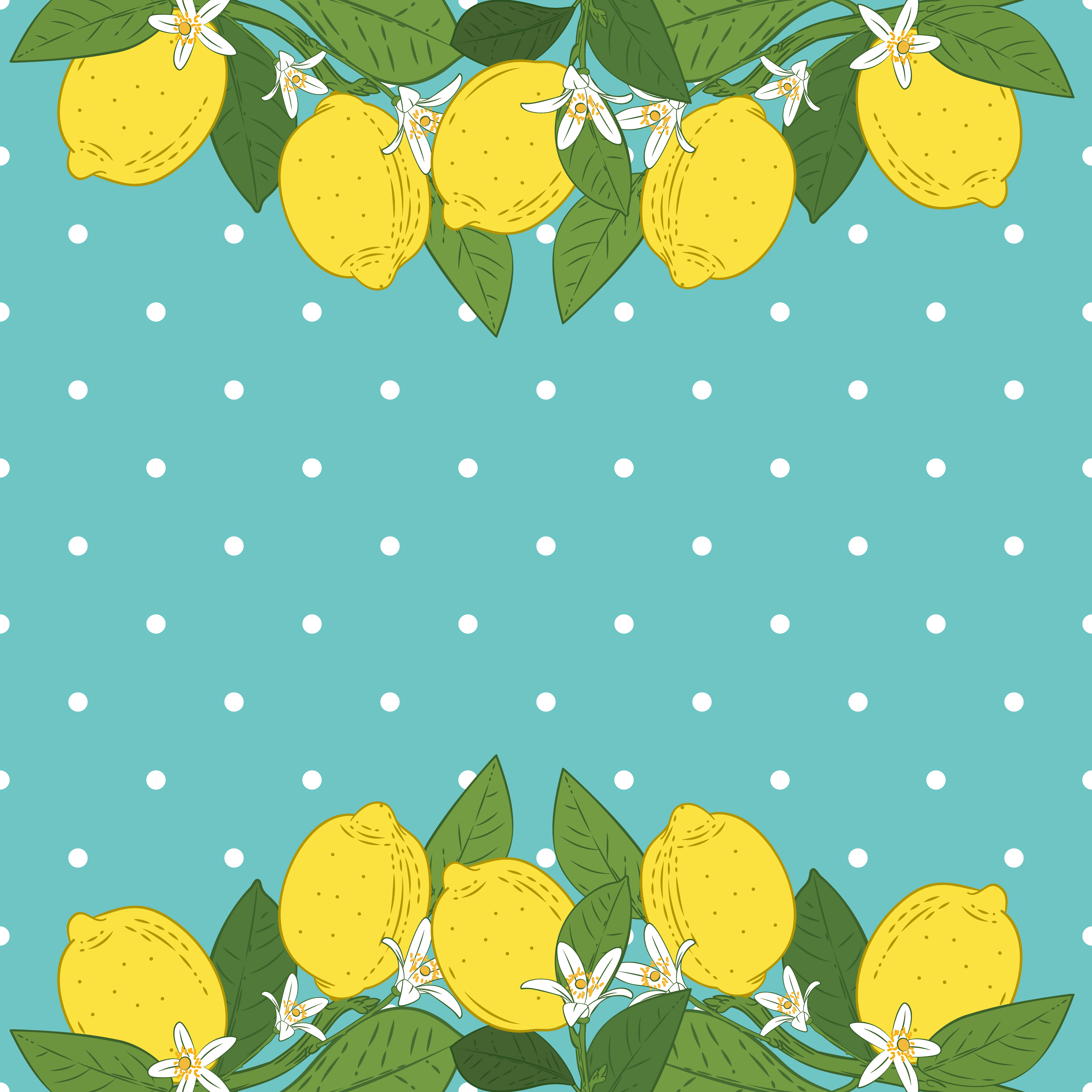 Tropical citrus lemon fruits bright background. Poster with lemons, green leaves and flowers on turquoise blue polka dot. Summer colorful design. - Download Free Vectors, Clipart Graphics & Vector Art