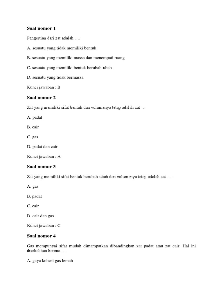soal ipa zat dan teori partikel