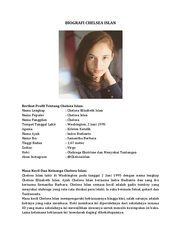 Profil dan Biodata Chelsea Elizabeth Islan | Biografi Profil Biodata