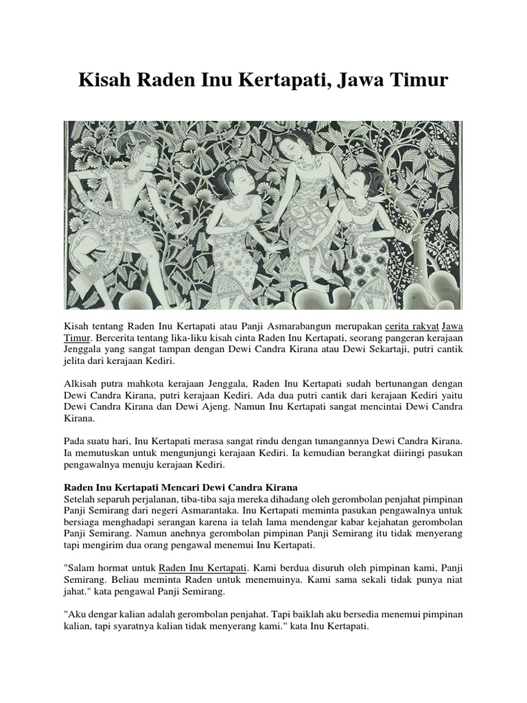 Cerita Rakyat: Kisah Raden Inu Kertapati, Jawa Timur