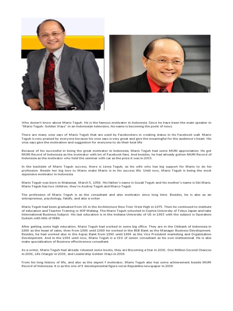 DOC) Biografi Mario Teguh | siti nurhasanah - Academia.edu