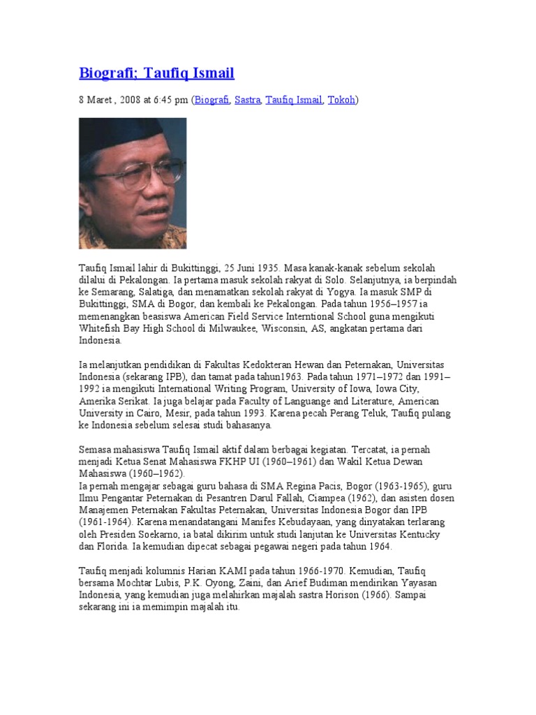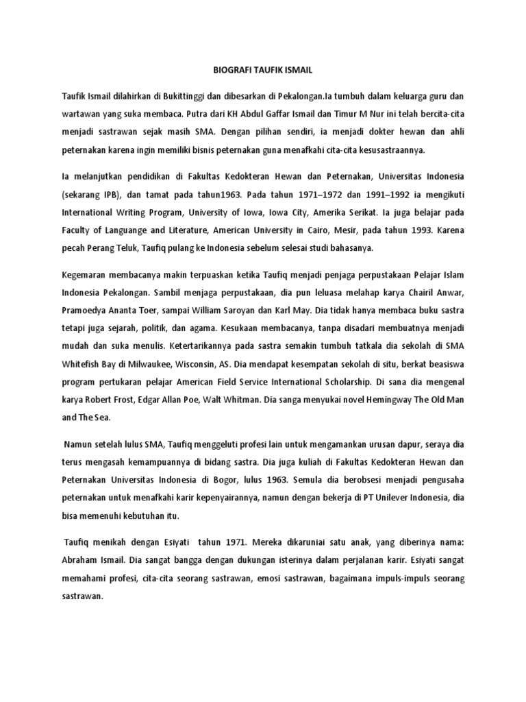 DOC) BIOGRAFI TAUFIK ISMAIL | Warda AF - Academia.edu