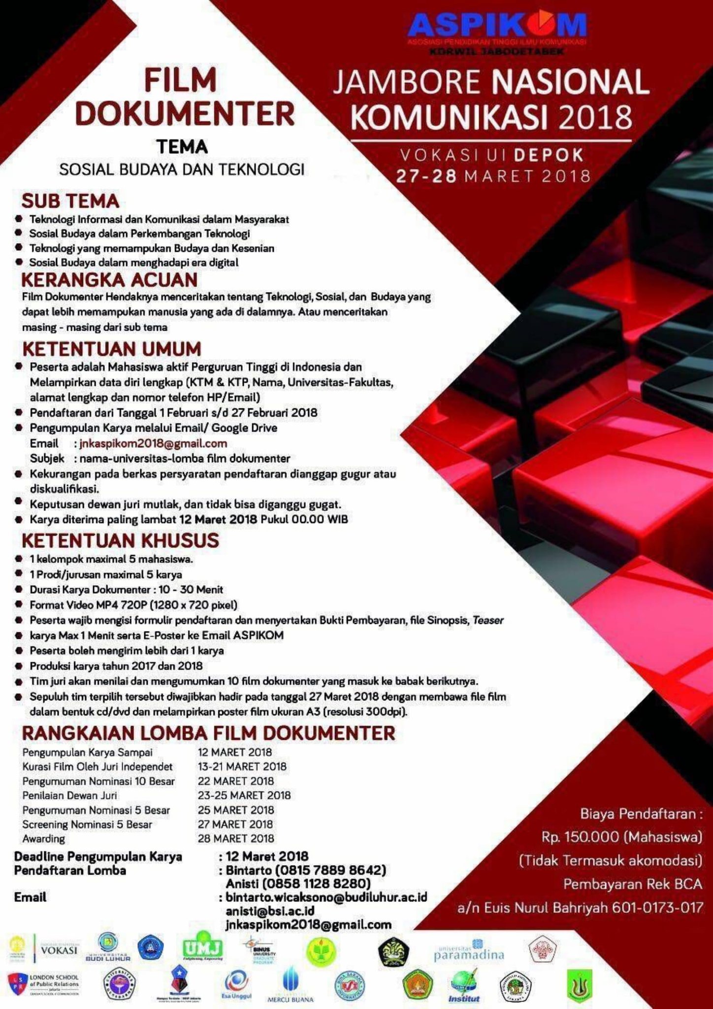 FIKom Untar on Twitter: “Hi Untarian, Fikom Untar dan ASPIKOM mengajak para mahasiswa Fikom untuk membuat film dokumenter dengan tema Sosial Budaya dan Teknologi. Untuk kamu yang berminat, segera ambil kesempatan ini!