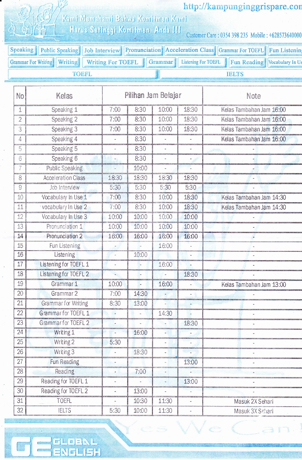 Global English : Kampung Inggris Pare | Biaya Kursus Bahasa Inggris