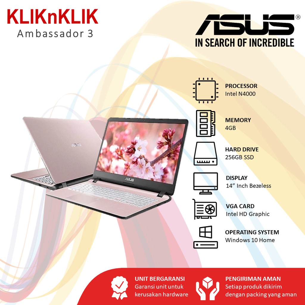 Laptop ASUS A407MA-BV423T ROSE GOLD -DualCore N4000/4GB/256GB SSD/FINGERPRINT/WIN10 | Shopee Indonesia