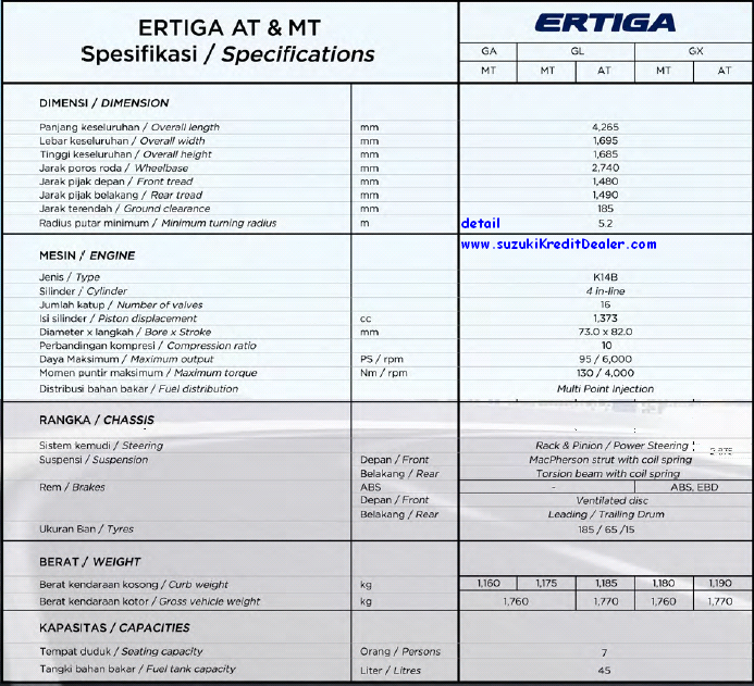 Suzuki Ertiga (2012-2018) Brochure | Download & Read all Specifications | Oto
