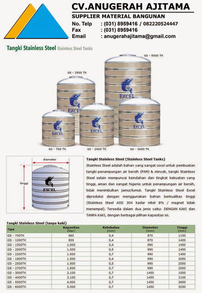 Ukuran Tangki Air Stainless Steel - I Soalan