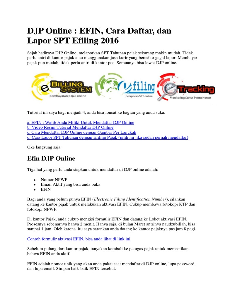 Cara Aktivasi EFIN untuk DJP Online (e-Filling dan e-Billing …