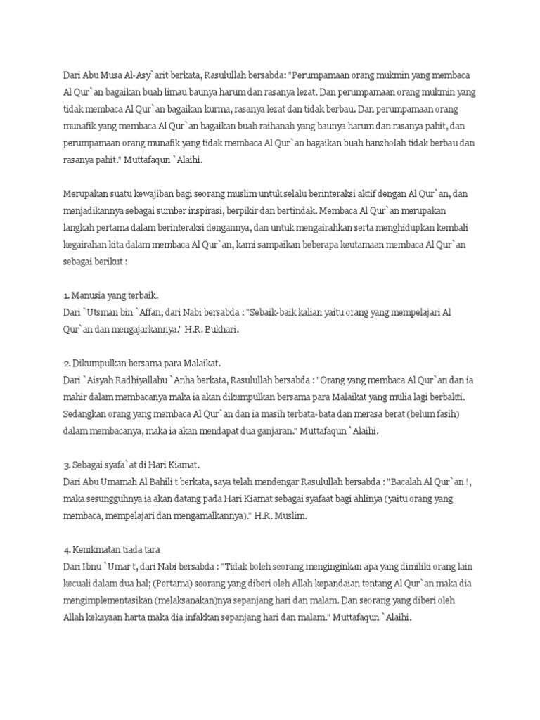 DOC) KULTUM TENTANG " KEUTAMAAN MEMBACA AL QUR’AN" | nurul …