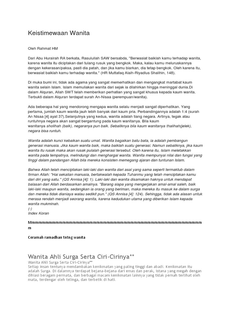 DOC) Teks Ceramah Kemuliaan Wanita | Edi Pribadianto - Academia.edu