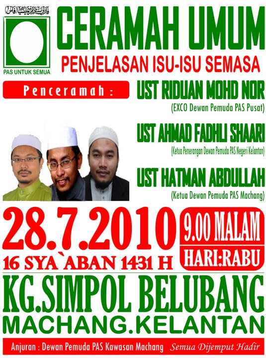 Dewan Pemuda Pas Kawasan Machang: Ceramah Terkini : 13hb Julai 2012
