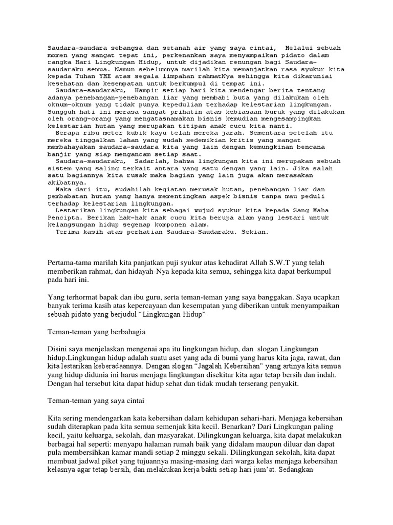 DOC) Contoh Naskah Pidato Tema Menjaga Lingkungan Di Sekolah | Nana SQuerpants - Academia.edu