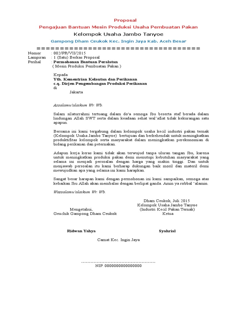 Contoh Proposal Permohonan Bantuan Modal Usaha Perorangan - Temukan Contoh