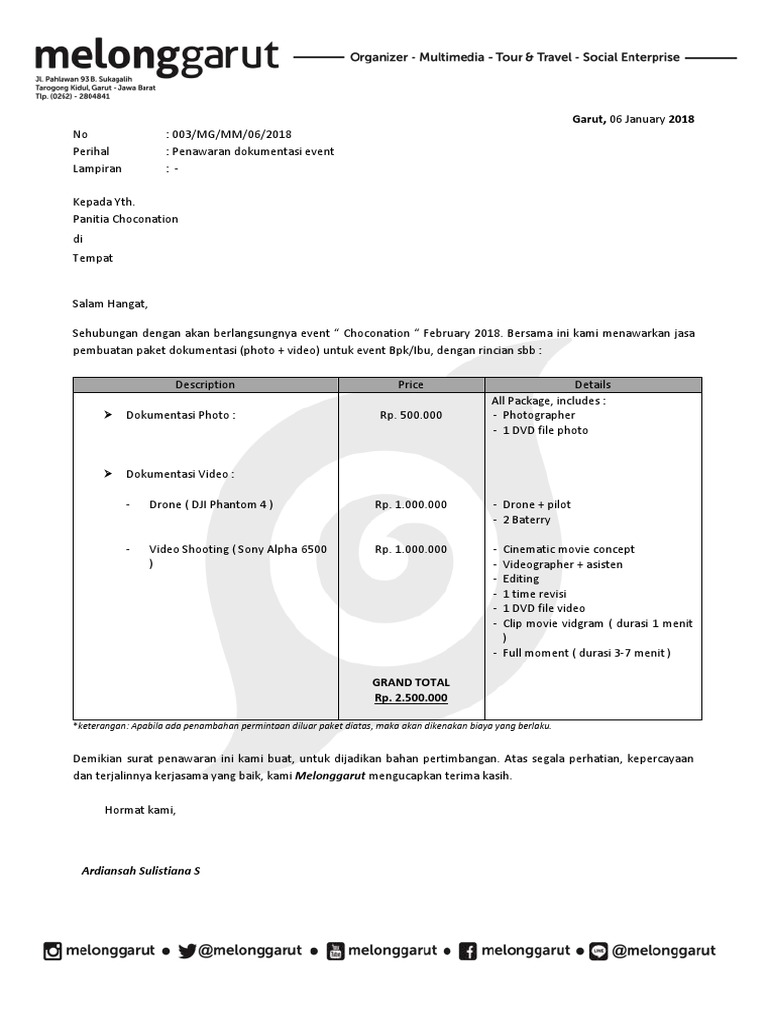 Contoh Surat Penawaran Fotografi - Gawe CV