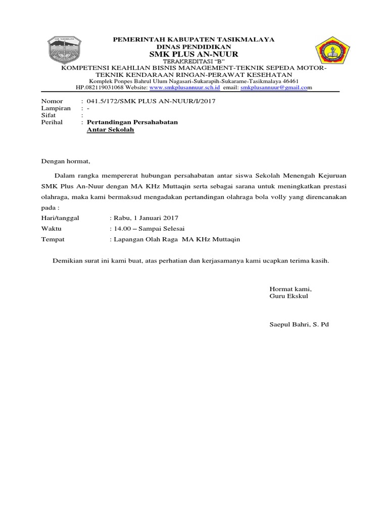 Contoh Surat Undangan Pertandingan Persahabatan Bola Volly Antar Sekolah | Undangan, Sahabat, Sekolah