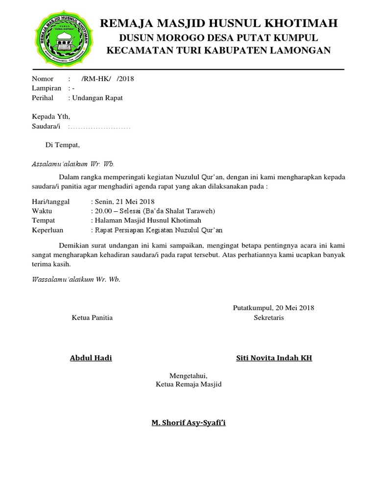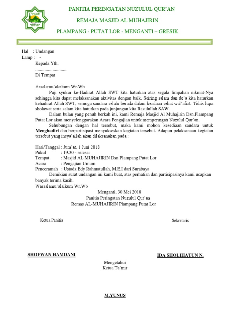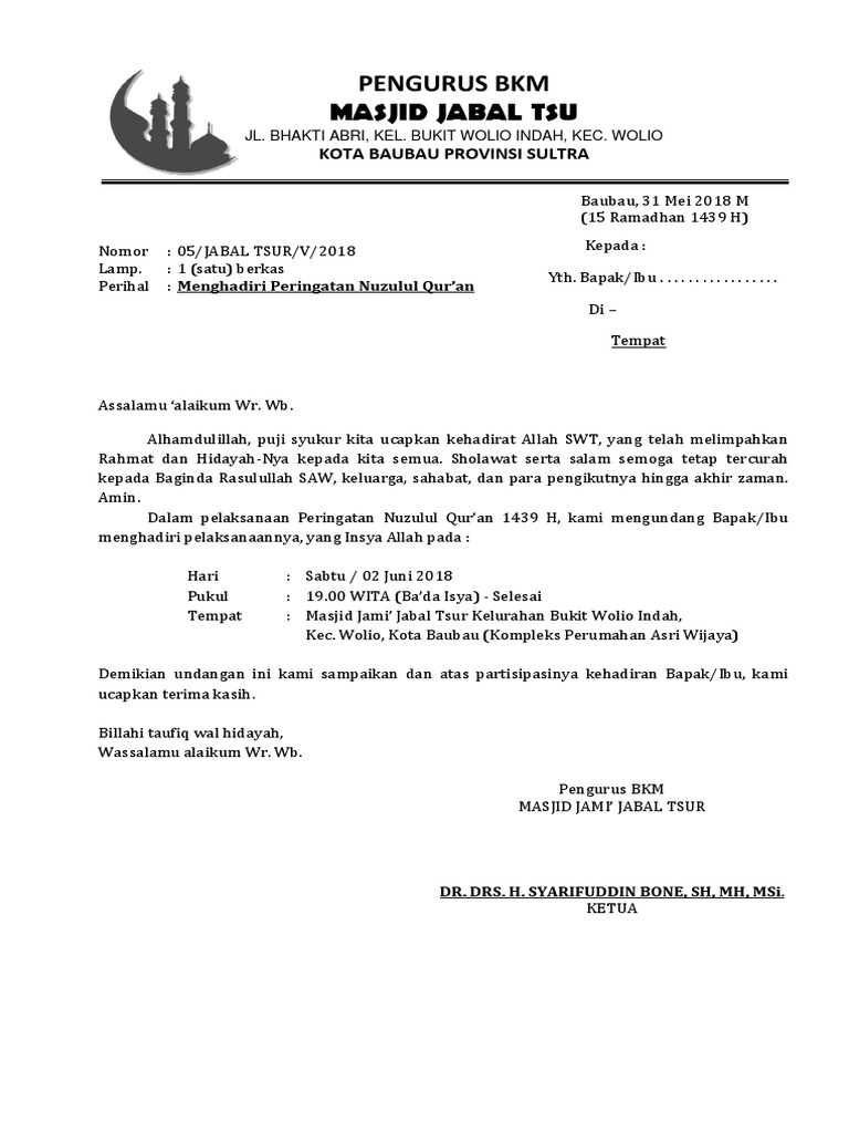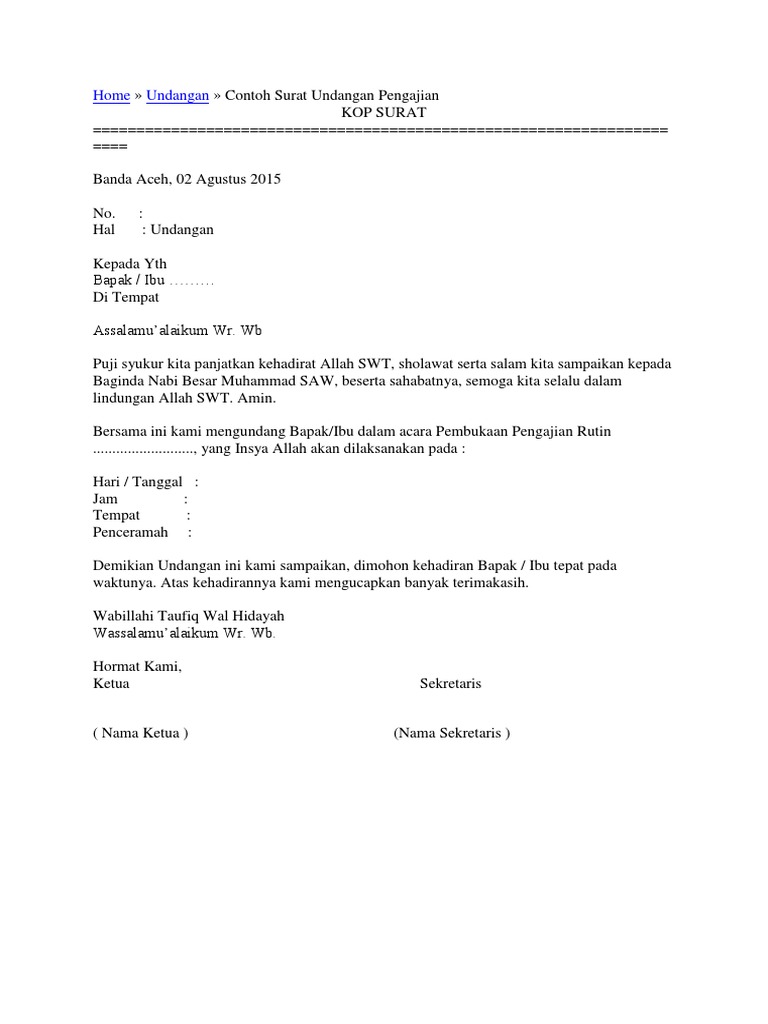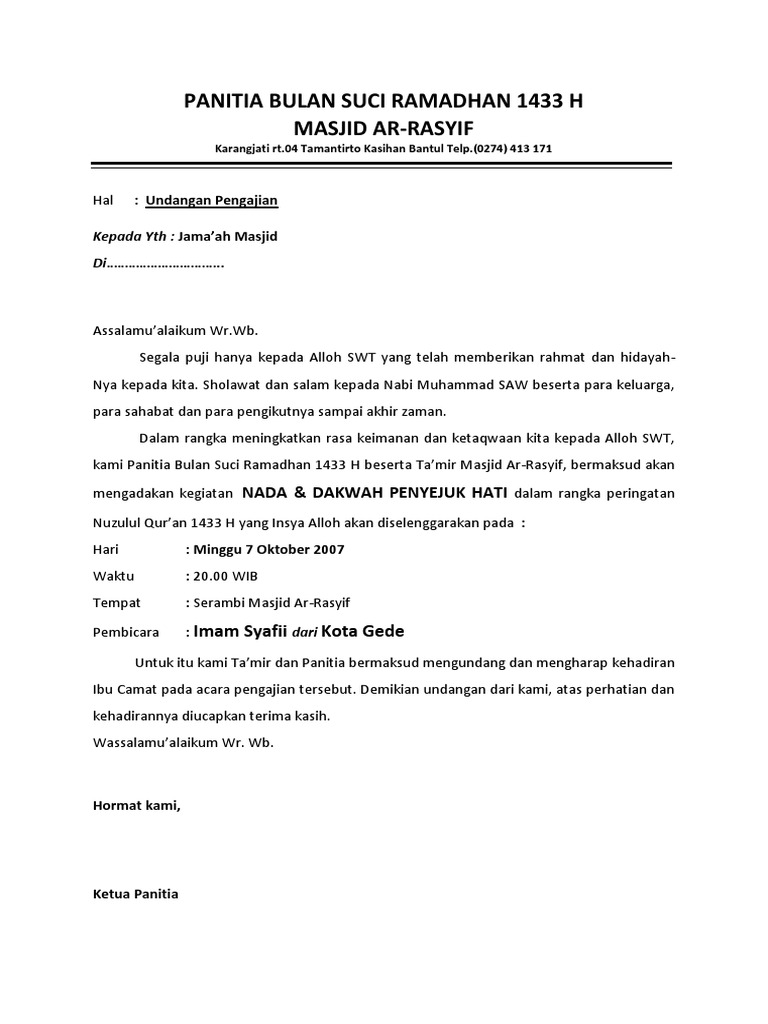 Download Contoh Surat Undangan Pengajian Doc | Guru, 60th