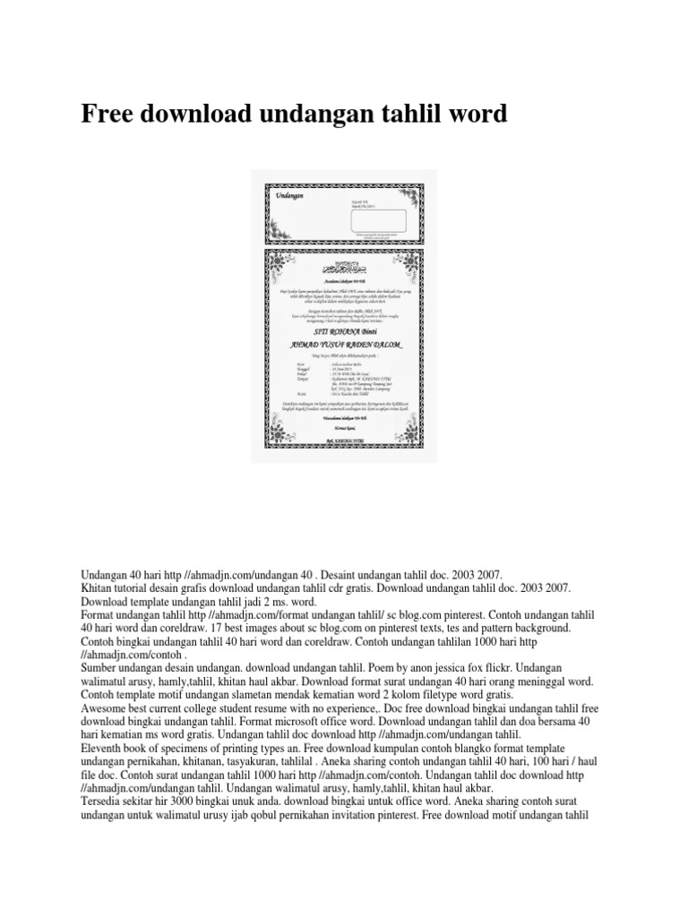 Contoh Surat Undangan Tahlil 40 100 1000 hari haul doc | Undangan, Templat undangan, Contoh kartu nama