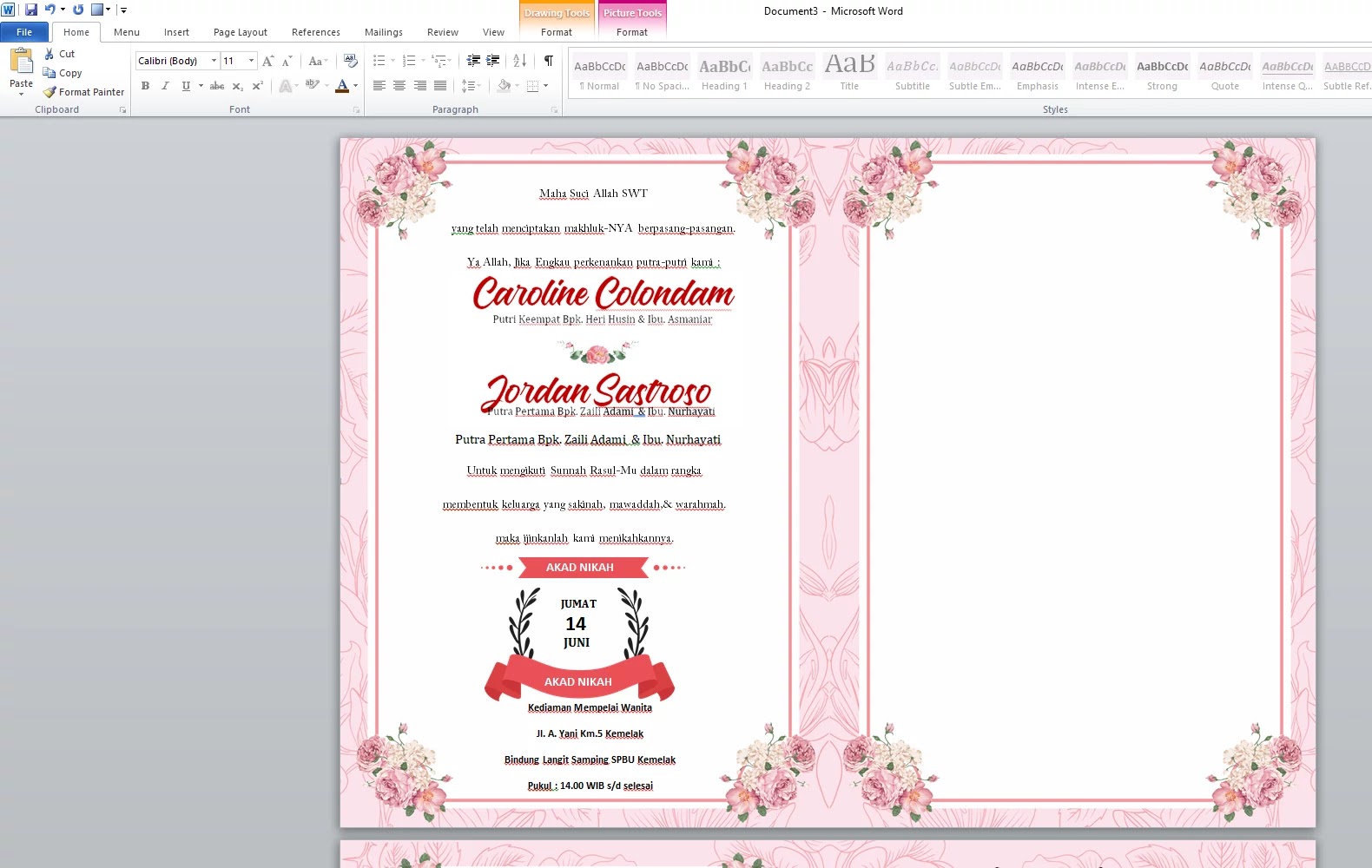 Download Undangan Pernikahan Format Word Gratis Keren Terbaru yang Menarik - Membangun Inspirasi
