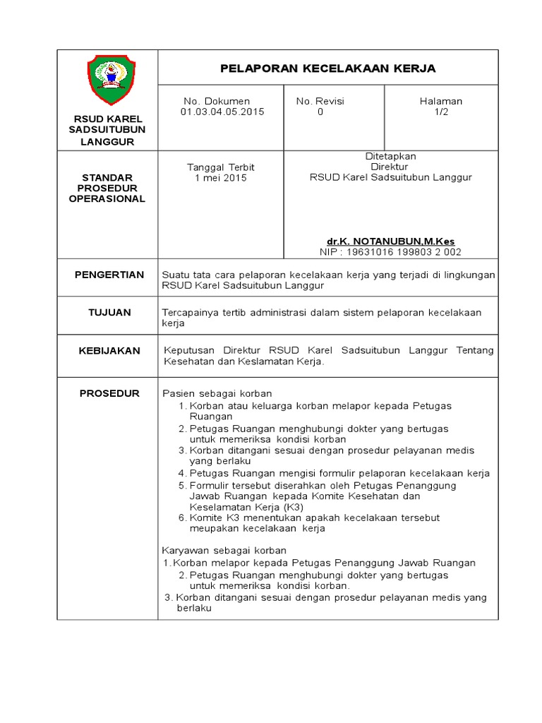 contoh laporan kecelakaan kerja di rumah sakit - SafetyShoe.com