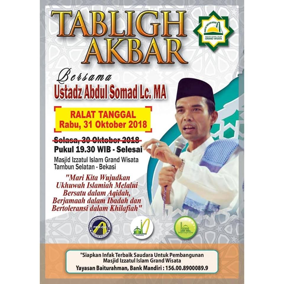 SAFARI DAKWAH UAS TGL 16, 17, 18 OKTOBER… - Pecinta Safari Dakwah Ustadz Abdul Somad, Lc., M.A | Facebook