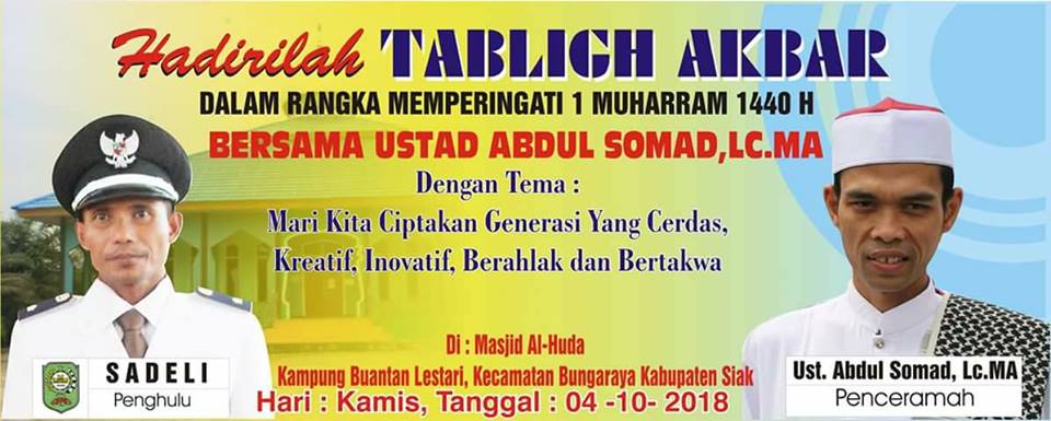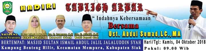 Ayo Hadiri..! Tausyiah Ustadz Abdul Somad di Acara Tabligh Akbar HUT Kabupaten Siak ke-19 - Info siak - Gali Informasi Bangun Budaya