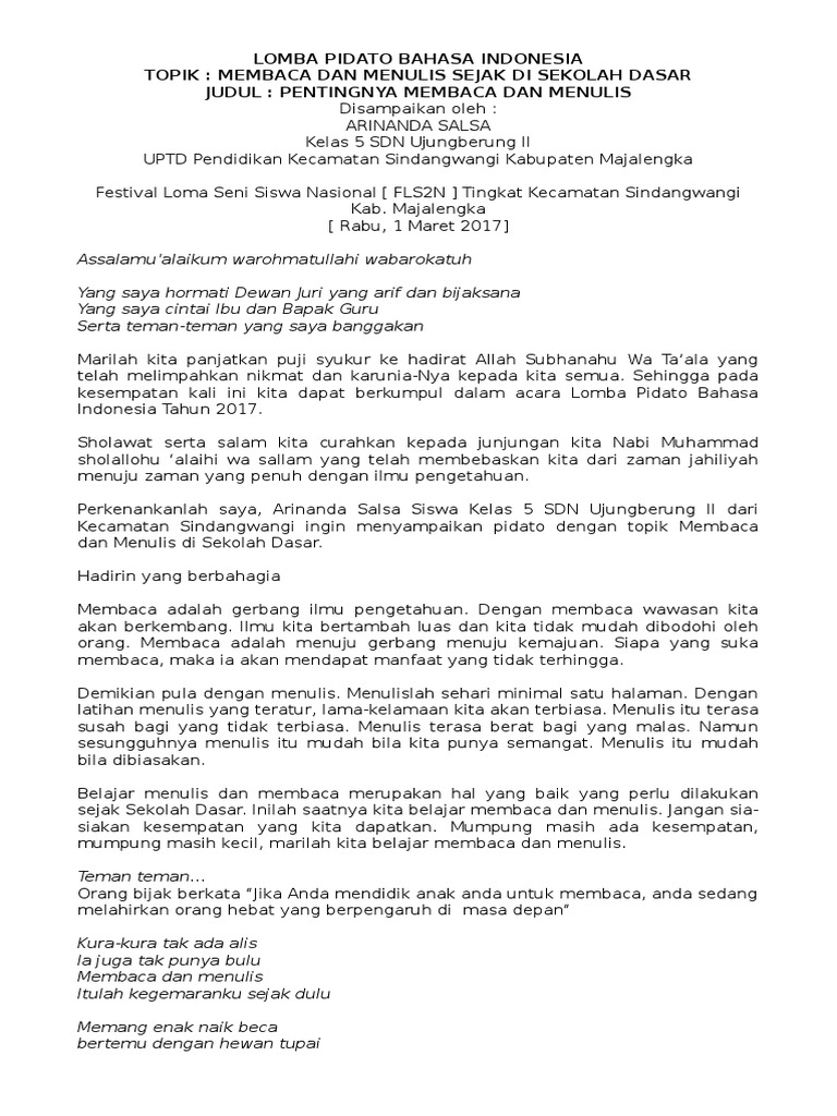 DOC) Contoh Pidato Singkat Pendidikan | indah mokobombang - Academia.edu