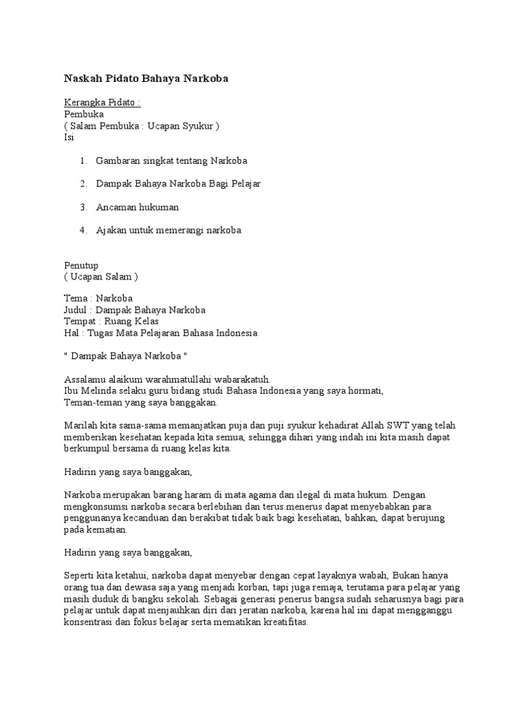Naskah Pidato Bahaya Narkoba