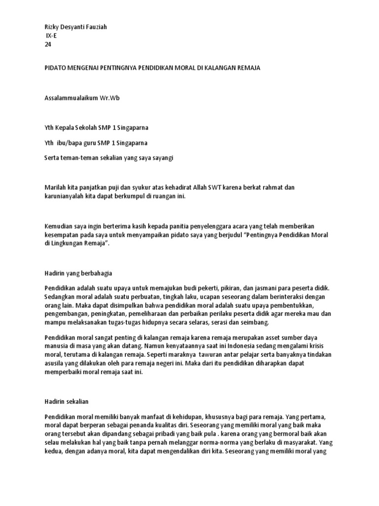 pidato pendidikan moral