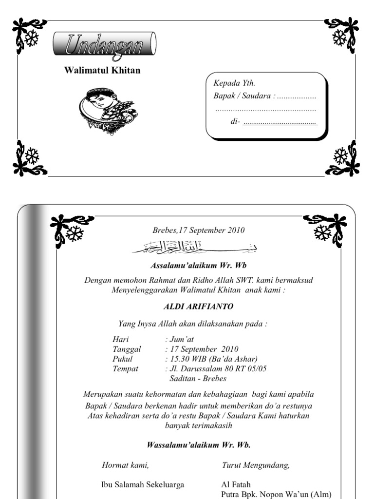Contoh Surat Undangan Walimatul Khitan | Belajar Office