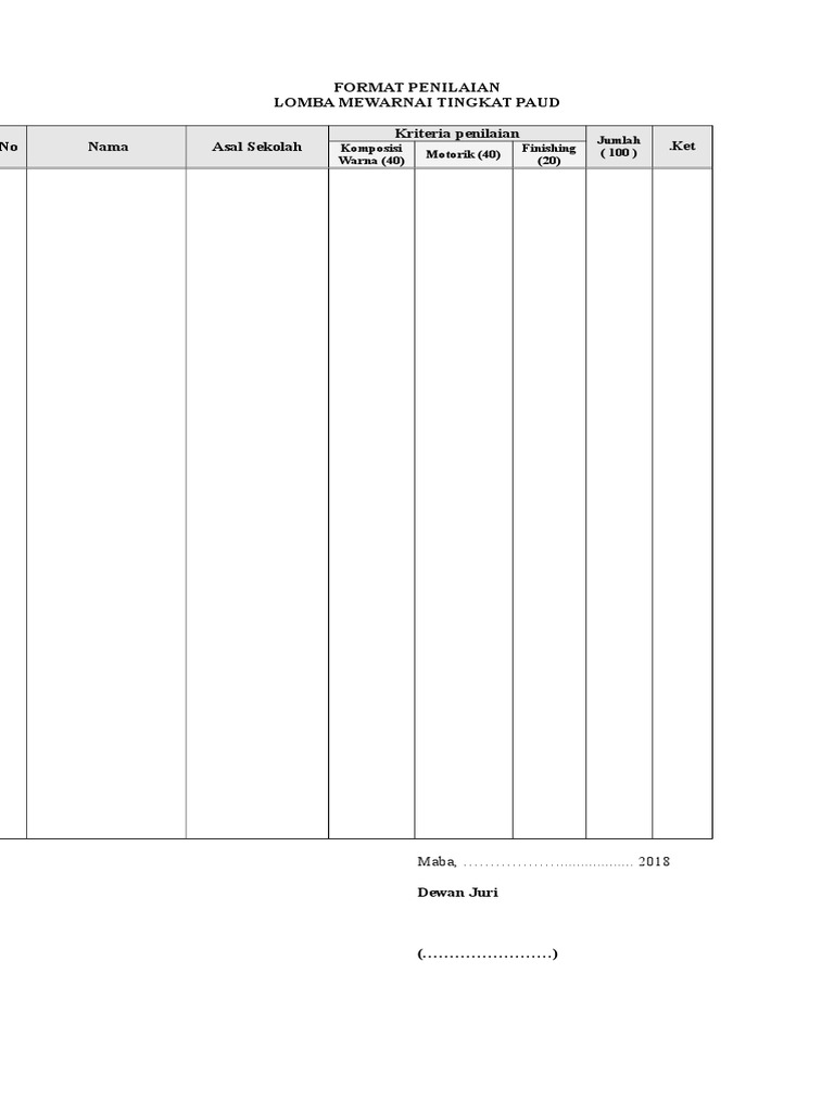 Format Penilaian Lomba Tilawah Contoh Blangko Nilai