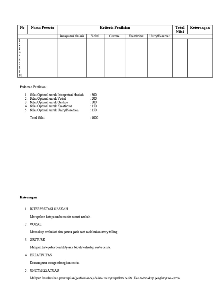 Format Penilaian Lomba Baca Puisi Pdf - Ada Lomba