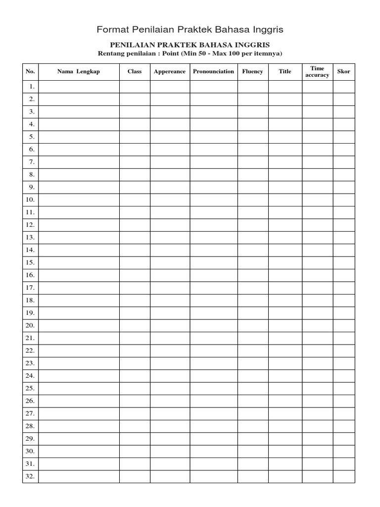Contoh Lembar Blangko Nilai Ujian Praktek Pidato