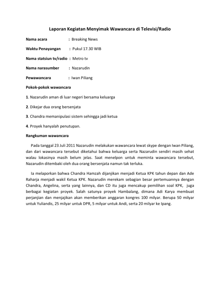 Contoh Laporan Kegiatan Menyimak Wawancara Di Televisi Terbaru …