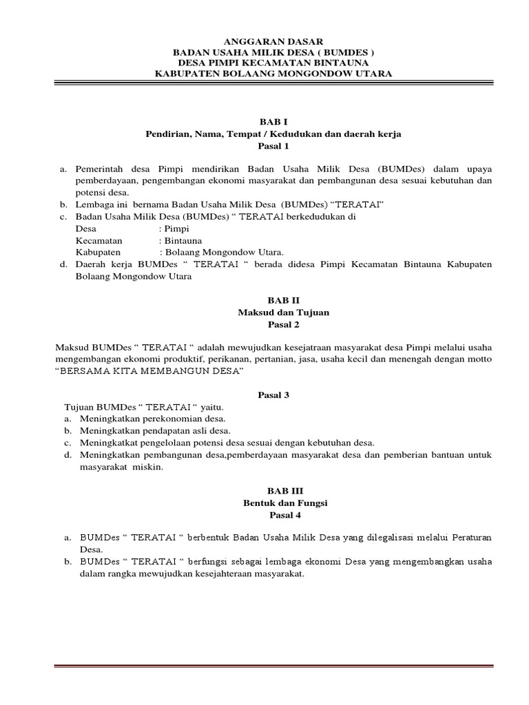 DOC) Contoh AD ART Badan Usaha Milik Desa (BUMDesa) | Hedi Hadiningrat - Academia.edu