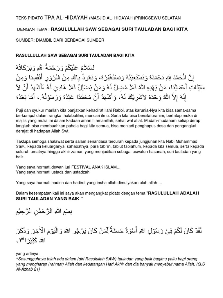 DOC) PIDATO SINGKAT PERINGATAN MAULID NABI MUHAMMAD SAW | daurulang daur - Academia.edu