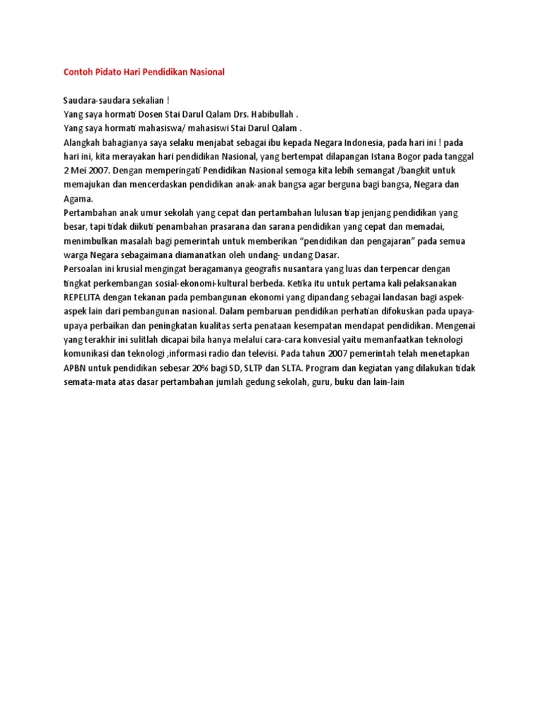 DOC) Contoh Naskah Pidato Hari Pendidikan Nasional 2 | Muhamad Idris - Academia.edu