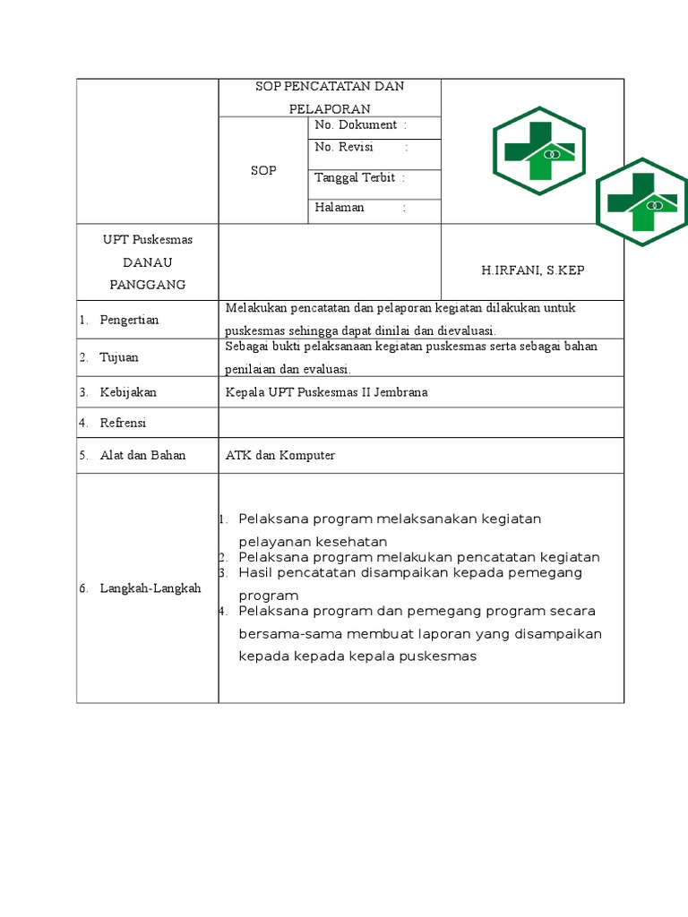 Sop Pencatatan Dan Pelaporan