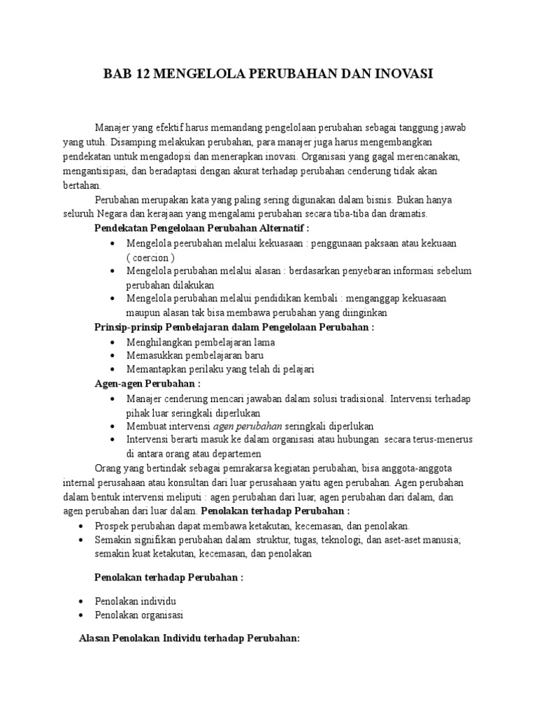 Bab 12 Mengelola Perubahan Dan Inovasi