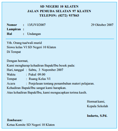 Contoh Surat Undangan Pengambilan Raport Untuk Wali Murid | Belajar Office