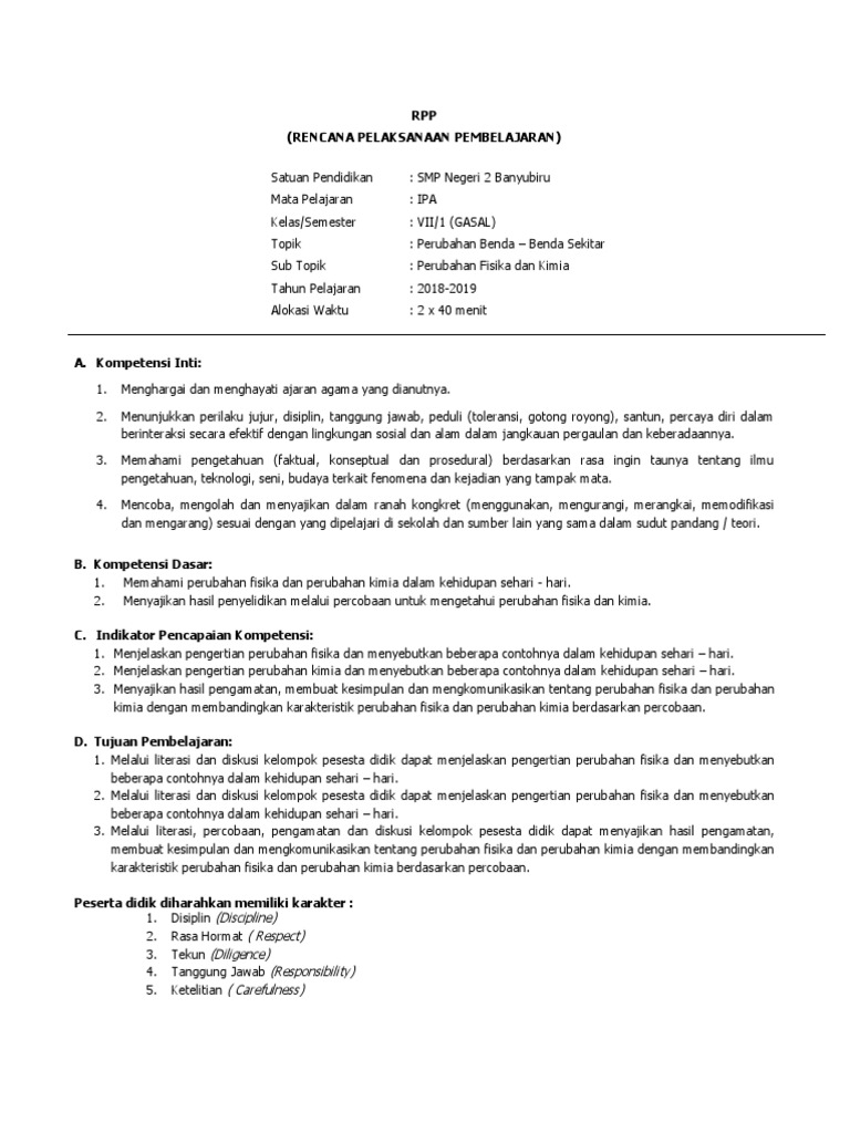 DOC) RPP PERUBAHAN MATERI | Nytha Bria - Academia.edu