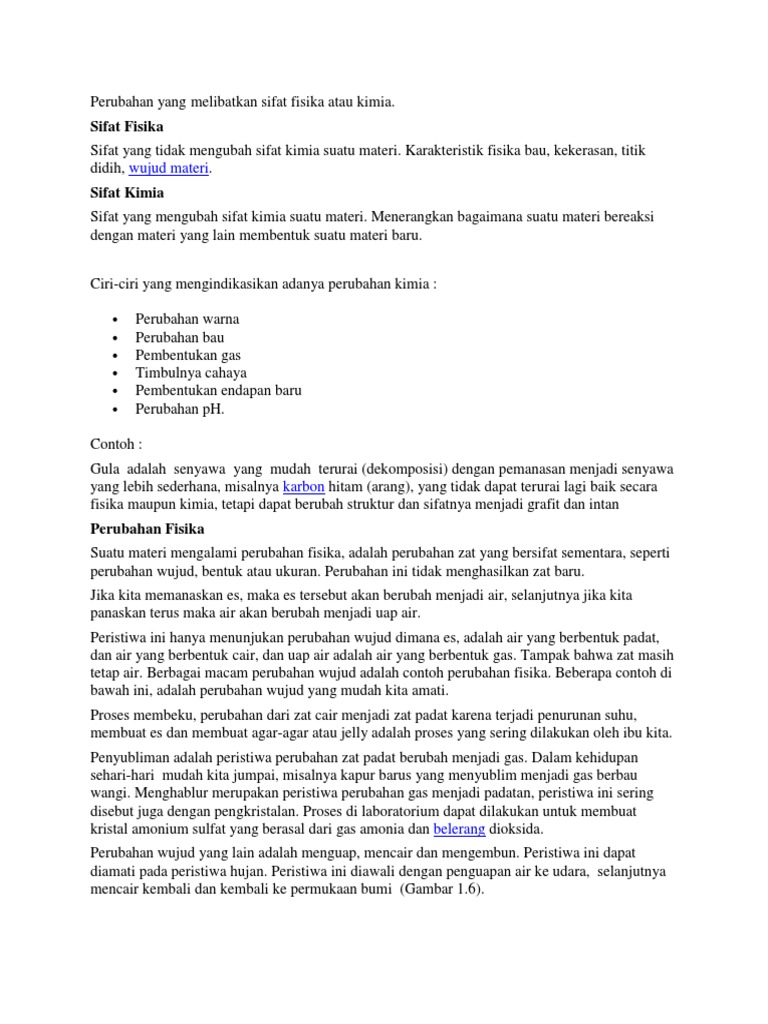 Perubahan Yang Melibatkan Sifat Fisika Atau Kimia