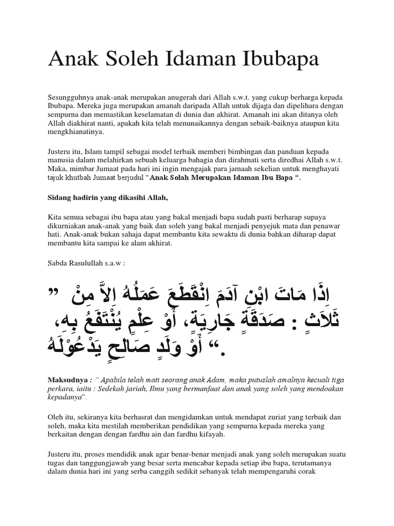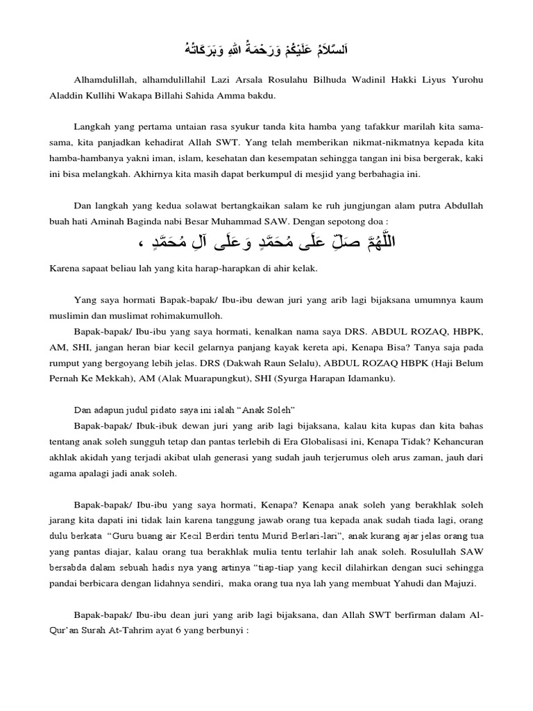 Teks Pidato - Teks Pidato Judul/Tema: ANAK SOLEH DAN… | Facebook