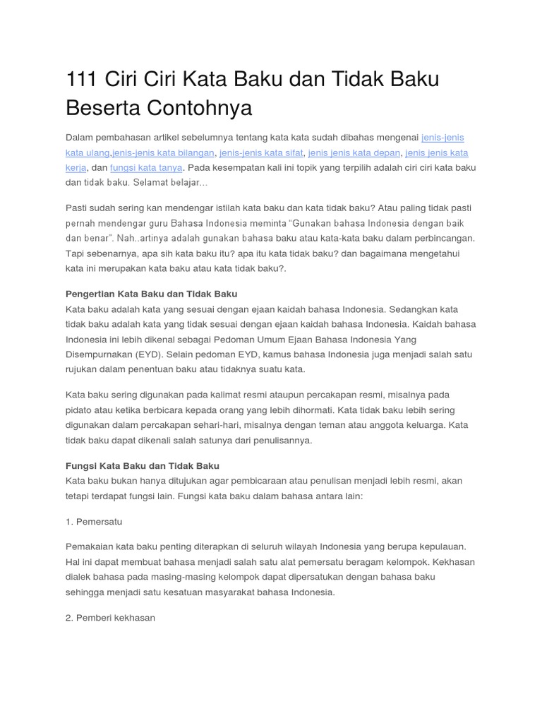 Pengertian Kata Baku Dan Tidak Baku Adalah