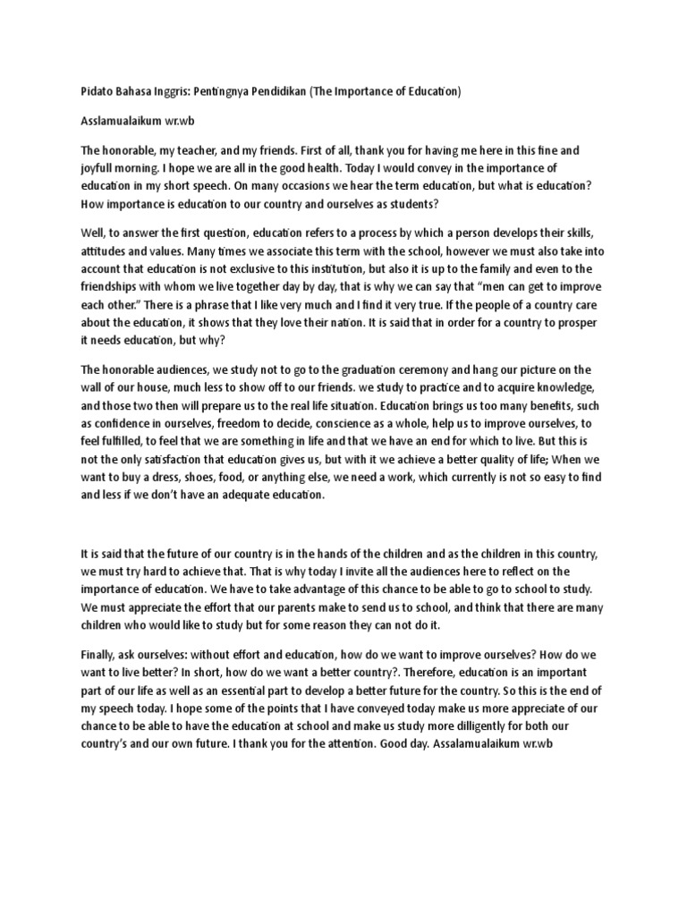 DOC) Pidato Bahasa Inggris Pendidikan Education UPDATE | farida …