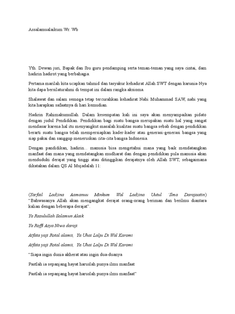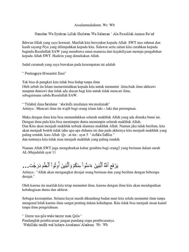 Pidato Naskah Tentang Pentingnya Mencari Ilmu - Teka Arab dan …