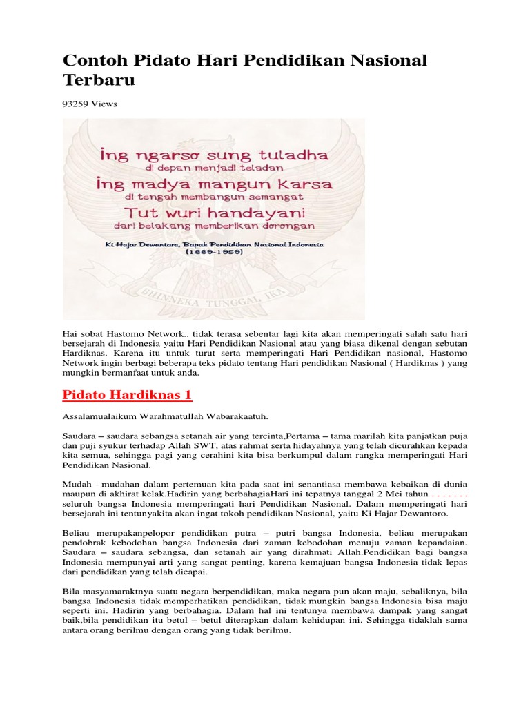 DOC) Contoh Naskah Pidato Hari Pendidikan Nasional 2 | Muhamad …
