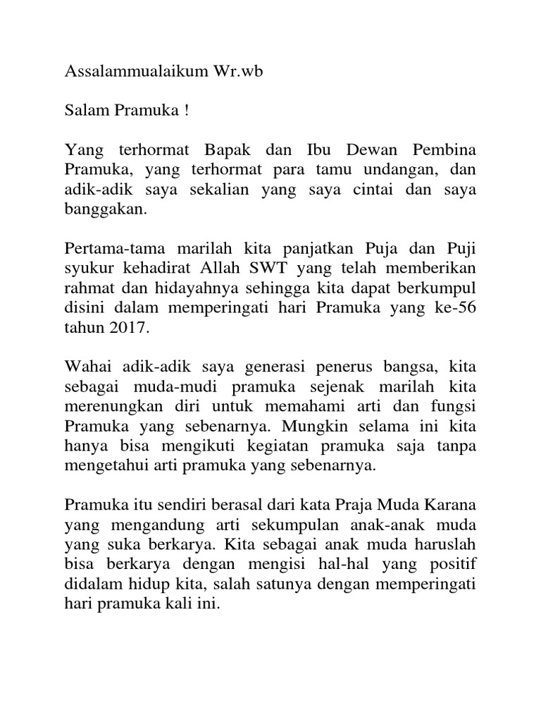 Contoh Teks Pidato Hari Pramuka Dalam Bahasa Inggris Dan Artinya