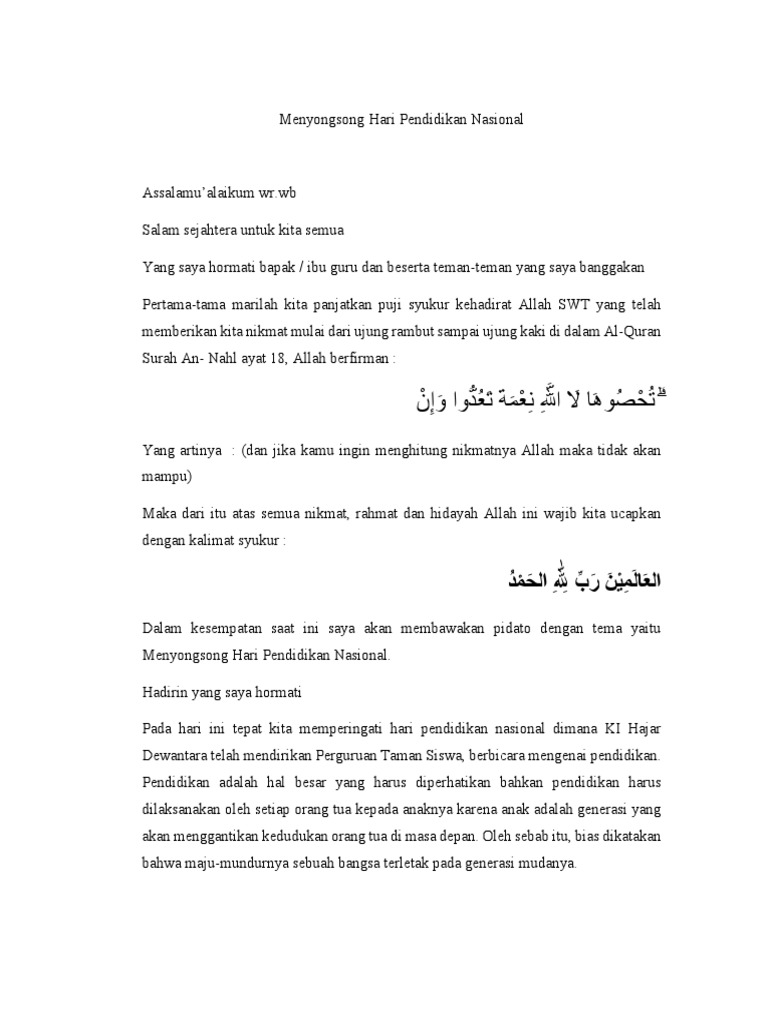 DOC) Contoh Naskah Pidato Hari Pendidikan Nasional 2 | Muhamad …