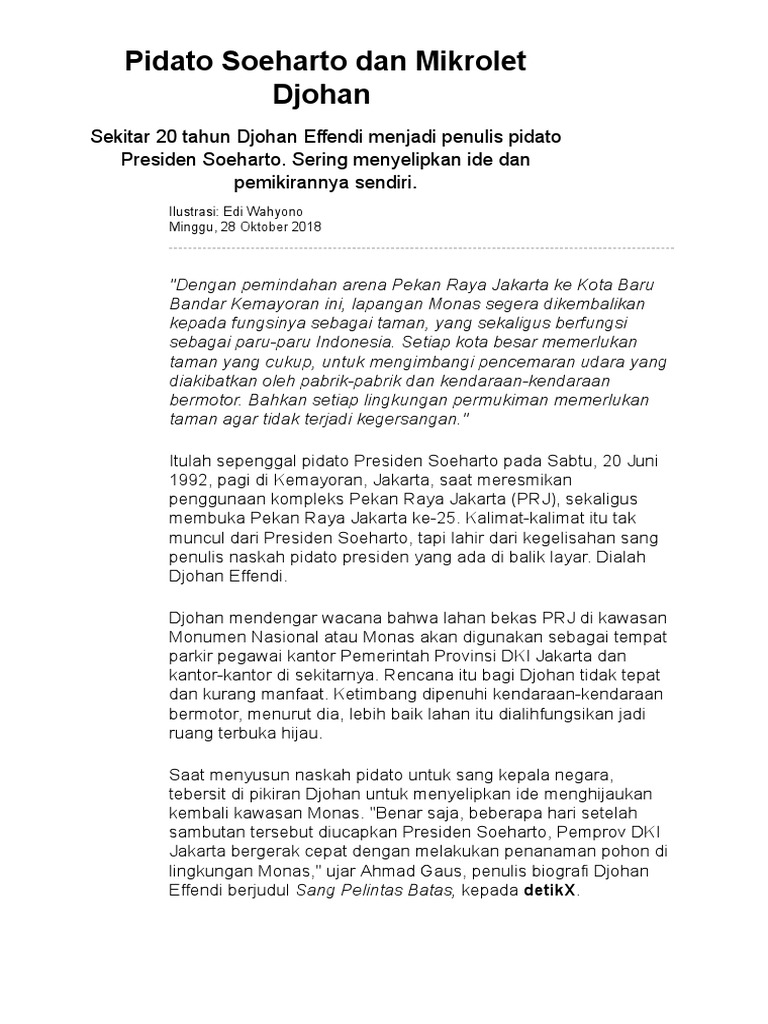 Pidato Presiden Soeharto Dan Mikrolet Djohan