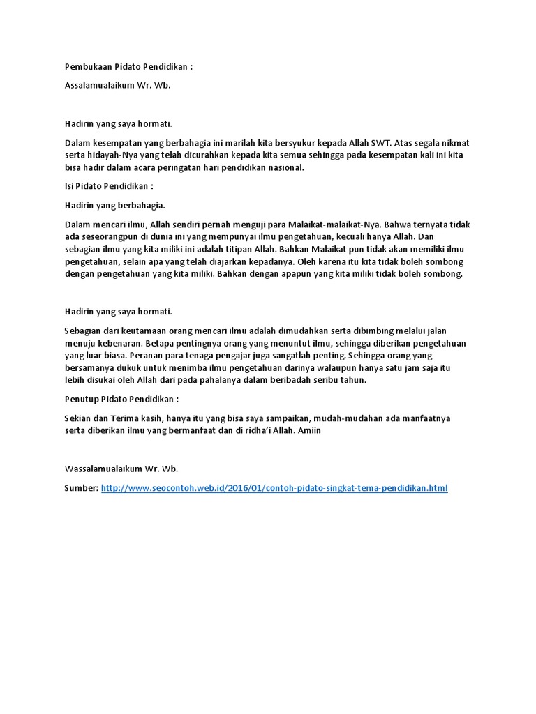 DOC) Contoh Pidato Singkat Pendidikan | indah mokobombang - Academia.edu